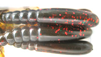 が白くなるくらいまで揉んでやると、軟らかくなってフッキング率がUPする気がします。グラブの基本形で、カラーも多くどんなリグにも対応するので、手堅く一匹釣るには良いと思います。自分の弟弟子が最も信頼するラバージグのトレーラーワームでもあります。シャローエリアにてフォーリング、スイミング。水質は特に問わず。カラーNo.195使用テールにラメが多い個体だとなぜか釣果